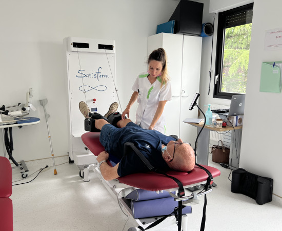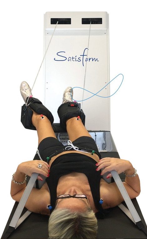 The kinematics generated by the device is continuously adjusted on the joint capacities (knees, hips, pelvis, spine) as well as on the muscle release of the deep and peripheral muscles.