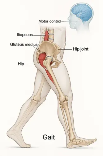 This approach targets a broad spectrum of conditions: early or post-operative hip disease, hip osteoarthritis, femoroacetabular impingement, post-hip replacement rehabilitation, post-stroke mobility limitation, hemibody spasticity, pelvic fracture recovery, muscle injuries (psoas, gluteus, piriformis), post-surgical sciatica, iliotibial band syndrome, and unilateral compensation due to weight-bearing or functional asymmetry. It also includes central and peripheral gait disorders, such as hemiparesis, Parkinson’s syndromes, and proprioceptive neuropathies. In all cases, reduced pathological tone creates a more effective therapeutic window for motor reprogramming.